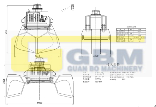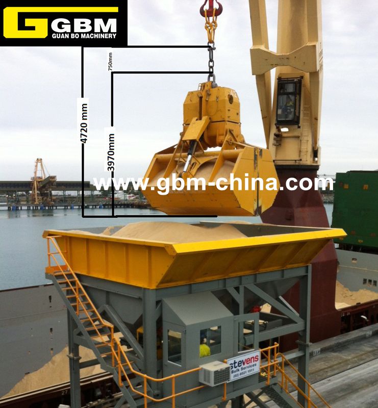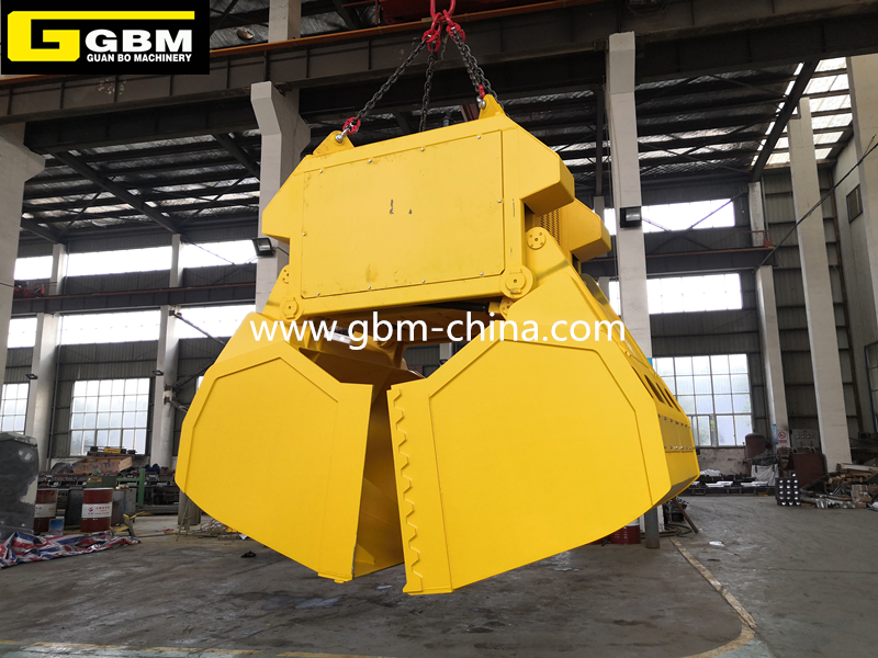 柴油機驅動液壓抓斗,包括吊環、卸扣、外殼、下承梁、斗體、液壓裝置、無線電遙控裝置,液壓裝置上設有液壓泵、油缸、控制閥塊系統,液壓泵通過與其連接的柴油機提供動力并通過電磁閥連接驅動所述油缸,連桿的兩端分別通過銷軸連接于兩斗體的內側邊緣對抓斗的打開和閉合時起到限位和保護作用,該抓斗能夠遠程遙控抓斗的抓取貨物或在沒有任何電源的情況下,帶動油缸實現抓斗的開啟、閉合、來抓放貨物,適應惡劣的工作環境,能在高頻率使用狀況下工作,延長了抓斗的工作壽命和提高了企業的效率及克服了生產的安全隱患,且操作方便。
