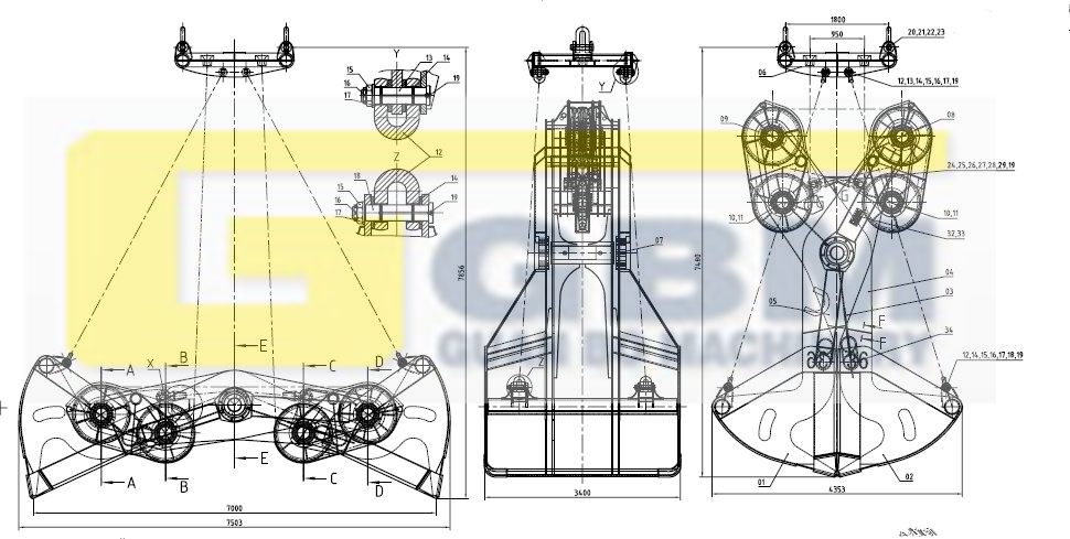 抓斗可適用于不同滑輪的排布起重機,可應用在任何四索門機或卸船機上。