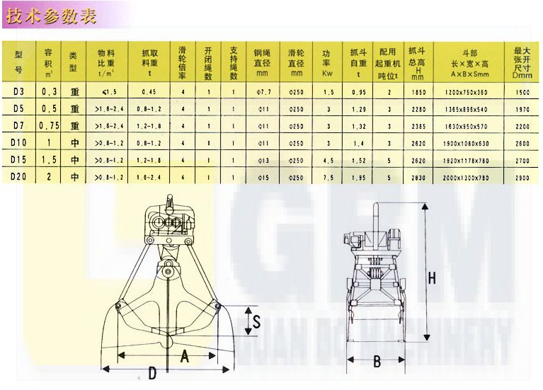 馬達抓斗可用于抓取散粒物品,例如,礦石、砂、碳石、爐渣、礦粉、焦炭、煤、松散的粘土等,馬 達抓斗不能用于水中工作。