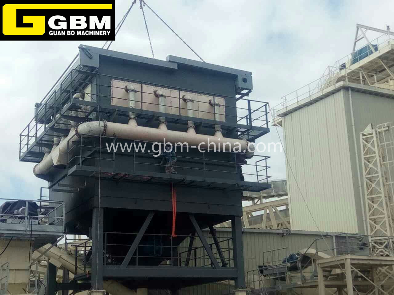 本設備料斗部分分上下兩層,因為上料斗的下口較大,上料斗不容易揚粉塵,除塵器吸風口布置在兩層的中間,上下料口之間密封并用脈沖布袋除塵器除塵。