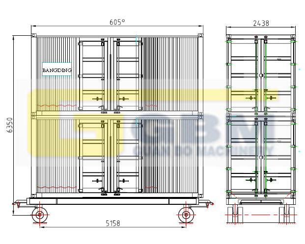 本機由裝包機、集裝箱、重力料斗、自動稱重控制系統、配電箱、輸送機、逢包機、氣動系統、除塵器、空氣壓縮機等組成。全部集成在兩只集裝箱內。集裝箱下安裝拖輪,可由拖車拖至工作場所。物料:化肥、糧食、飼料、散糖、硫磺、礦砂等自由流動物料。應用場所:它可用于碼頭、堆場、倉庫等地使用。