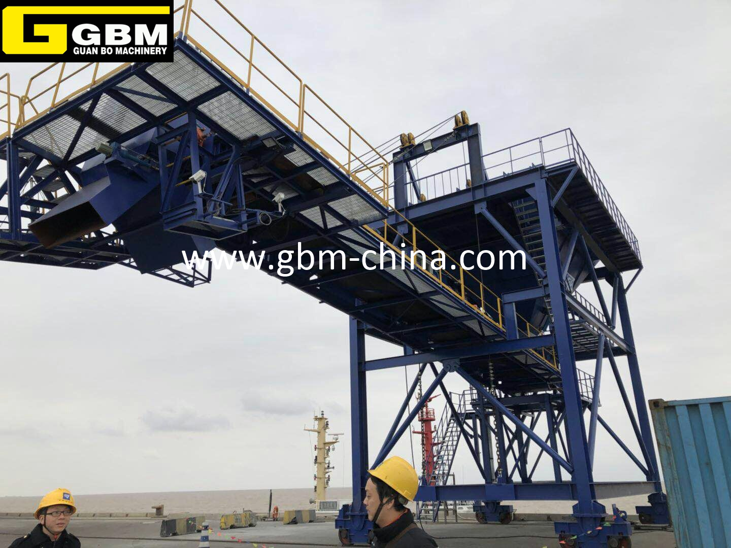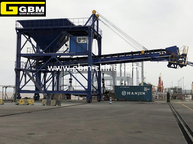 本設備主要用于散貨的卸料與裝車,通過門座式抓斗起重機將散貨抓起,再通過門座式抓斗起重機相關運行機構把抓斗所抓物料運行到裝車卸料系統的上方,然后通過門座式起重機PLC控制系統把抓斗打開,將散貨卸料到裝車卸料系統的卸料漏斗中;卸料漏斗的漏料口上有個電動液壓推桿控制裝置,用來控制物料的流量大小,使裝車時安全,有效,大大提高了工作效率。